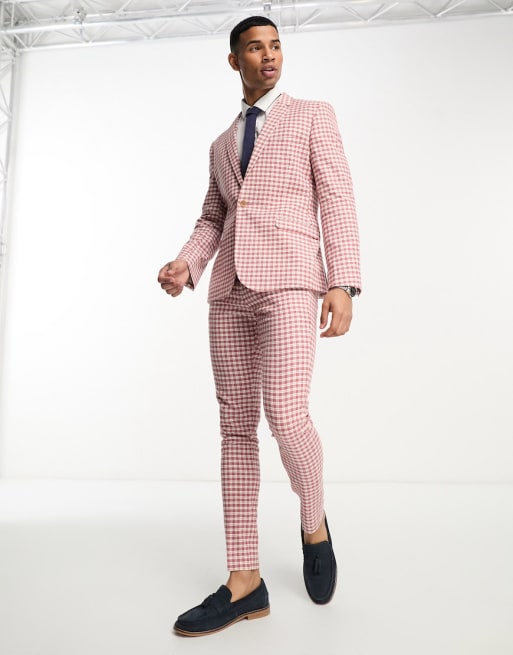ASOS DESIGN - Abito skinny in misto lino rosa a quadretti