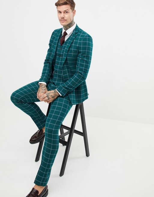 ASOS DESIGN - Abito skinny verde bosco a quadri grandi
