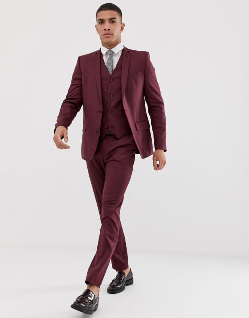 ASOS DESIGN - Abito slim bordeaux chiaro