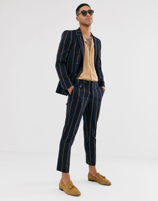ASOS DESIGN - Abito slim doppiopetto blu navy a righe larghe