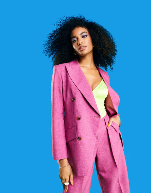 ASOS DESIGN - Abito slim incrociato rosa con spalline imbottite