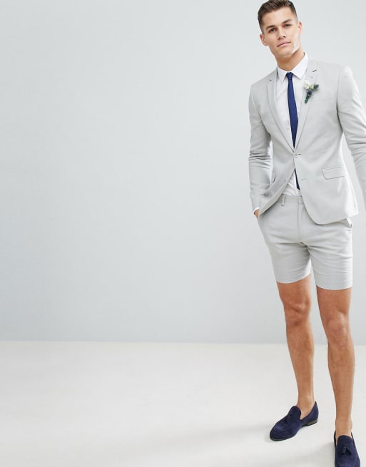 ASOS DESIGN - Abito super skinny grigio ghiaccio in lino da matrimonio