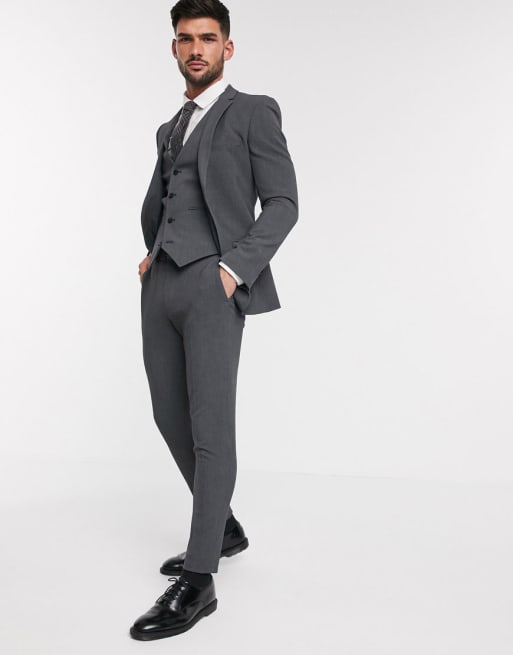 ASOS DESIGN - Abito super skinny in tessuto quadrielastco antracite