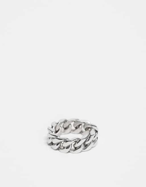 ASOS DESIGN - Anello a fascia stile catenina in acciaio inossidabile resistente all'acqua color argento