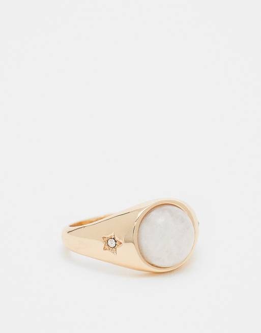 ASOS DESIGN - Anello a sigillo dorato con pietra semipreziosa lunare