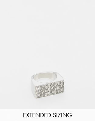 ASOS DESIGN - Anello argentato con cristalli e design a doppio dado