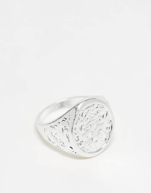ASOS DESIGN - Anello color argento con sigillo a moneta zigrinato