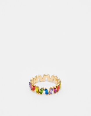 ASOS DESIGN - Anello dorato con cristalli baguette arcobaleno