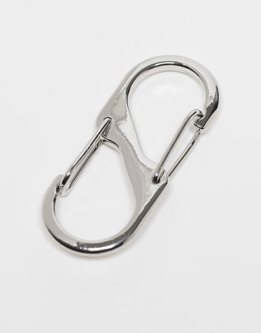 ASOS DESIGN - Anello per chiavi a moschettone color argento a doppia estremità