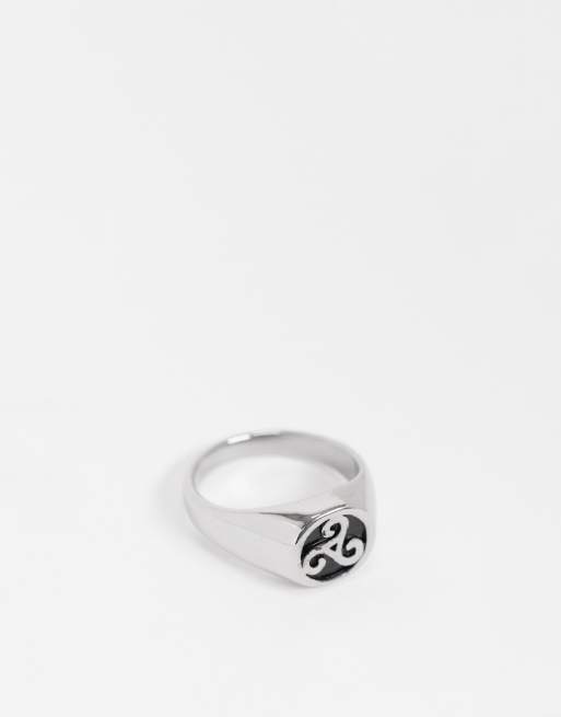 ASOS DESIGN - Anello per mignolo argentato in acciaio inossidabile resistente all'acqua con simbolo