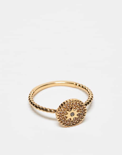 ASOS DESIGN - Anello placcato oro 14 ct con zirconia cubica