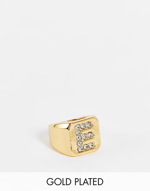 ASOS DESIGN - Anello placcato oro 14k con lettera E