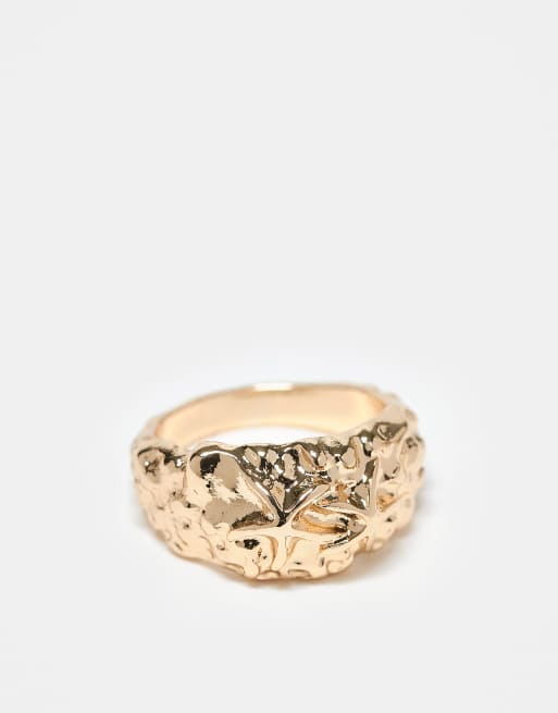 ASOS DESIGN - Anello zigrinato effetto metallo fuso dorato con motivo marino