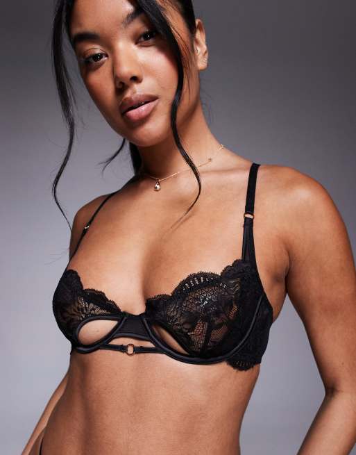 ASOS DESIGN - Anika - Reggiseno con ferretto e cut-out in pizzo e rete nero con anelli
