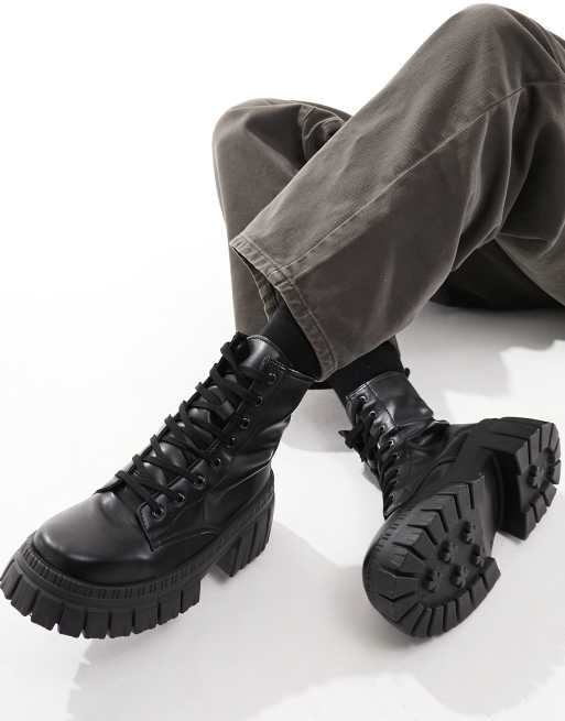ASOS DESIGN - Auto - Stivaletti stringati neri con suola spessa