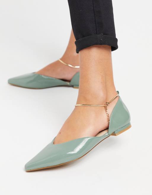 ASOS DESIGN - Ballerine verniciate con cavigliera kaki