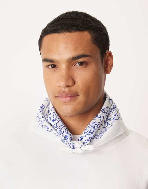 ASOS DESIGN - Bandana bianca con stampa cachemire blu