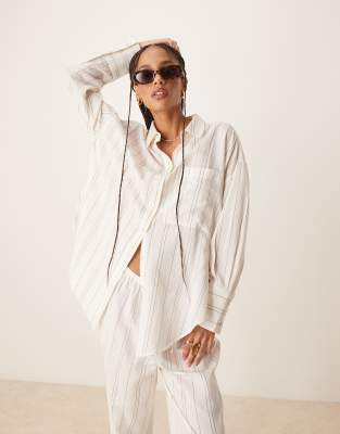 ASOS DESIGN - Belle - Copricostume stile camicia monocromatico a righe con allacciatura laterale