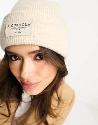 ASOS DESIGN - Berretto color crema con etichetta "Stockholm"