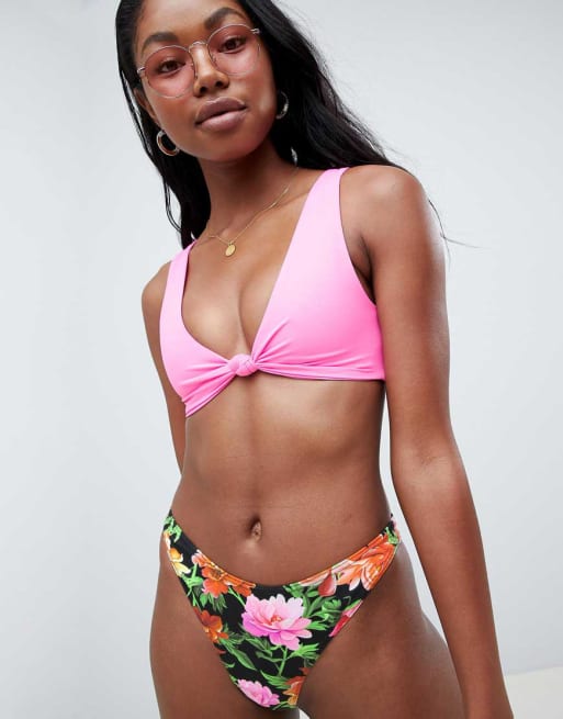 ASOS DESIGN - Bikini con top corto minimalista e nodo a contrasto
