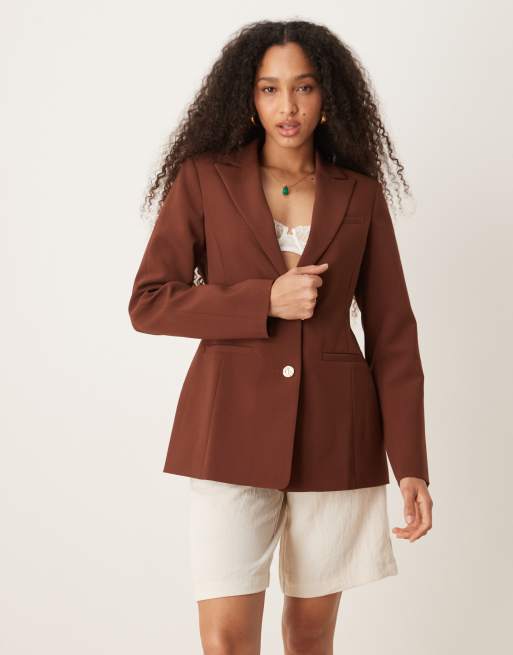 ASOS DESIGN - Blazer color cioccolato con fianchi sagomati