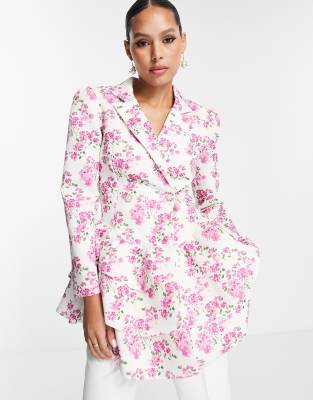 ASOS DESIGN - Blazer con peplo in jersey a fiori rosa