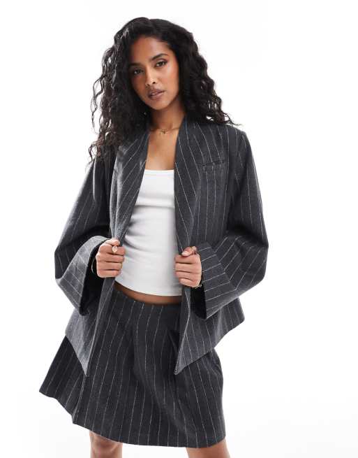 ASOS DESIGN - Blazer e gonna effetto lana antracite a righe in coordinato