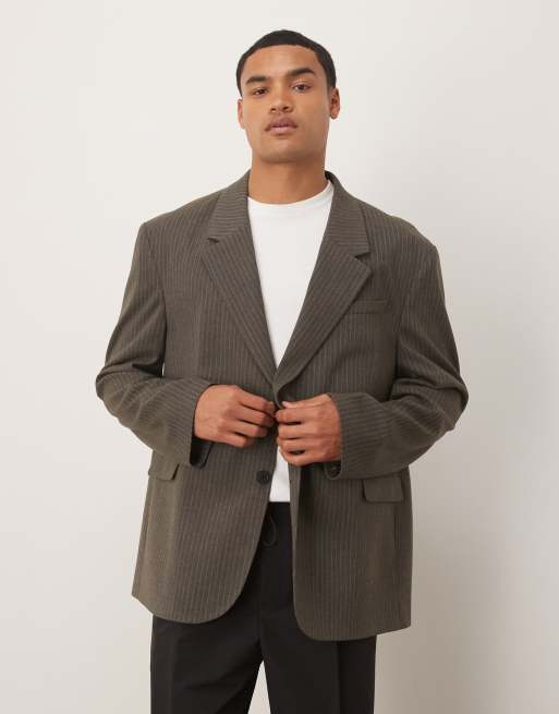 ASOS DESIGN - Blazer oversize extra largo grigio in flanella con motivo gessato