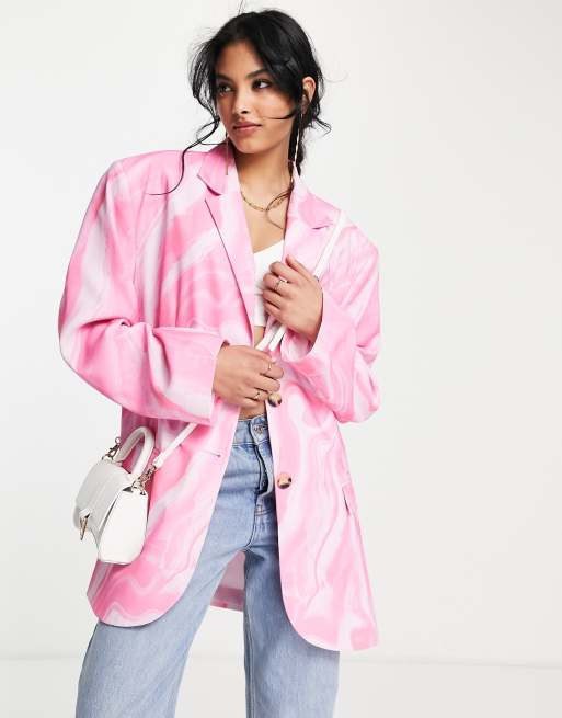 ASOS DESIGN - Blazer oversize stile dad rosa con motivo astratto