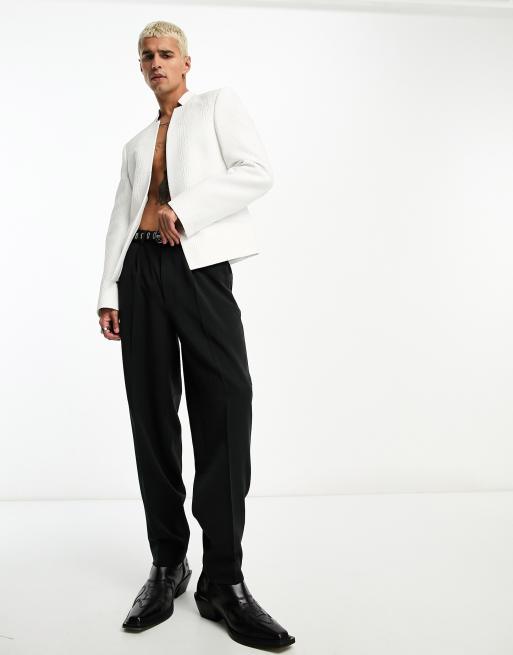ASOS DESIGN - Blazer squadrato bianco jacquard