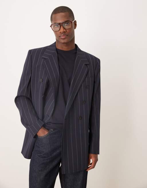 ASOS DESIGN - Blazer vestibilità comoda color blu navy gessato