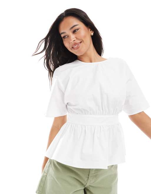 ASOS DESIGN - Blusa allacciata in vita con schiena scoperta bianca