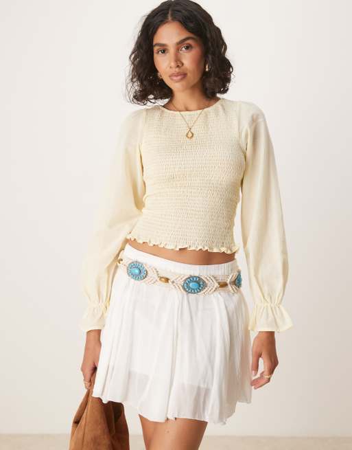 ASOS DESIGN - Blusa arricciata in cotone color latticello