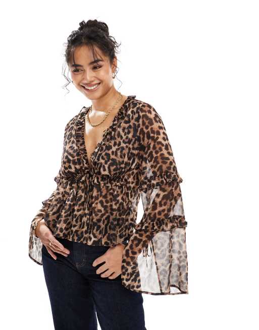 ASOS DESIGN - Blusa in chiffon con stampa leopardata e volant