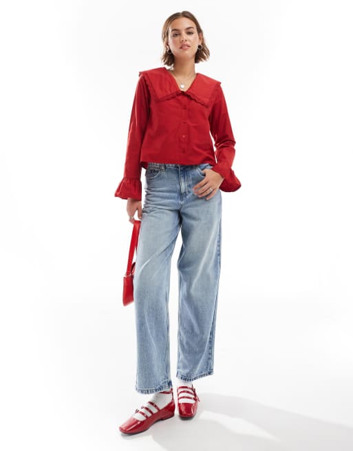 ASOS DESIGN - Blusa rossa in popeline con colletto oversize