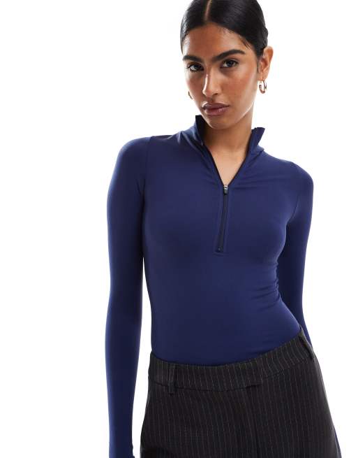 ASOS DESIGN - Body a maniche lunghe blu navy con zip corta modellante senza cuciture