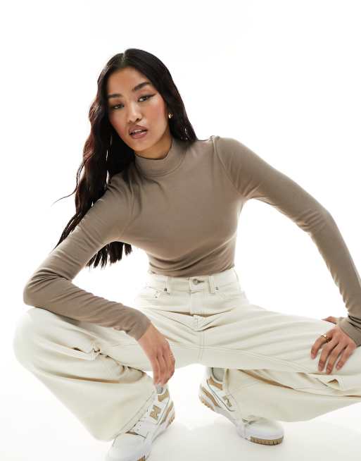 ASOS DESIGN - Body a maniche lunghe color pietra con collo alto