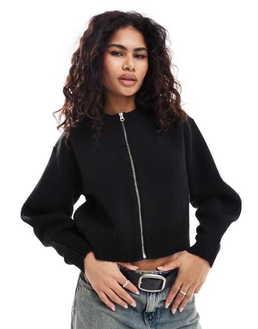 ASOS DESIGN - Bomber minimal in maglia nera con maniche voluminose