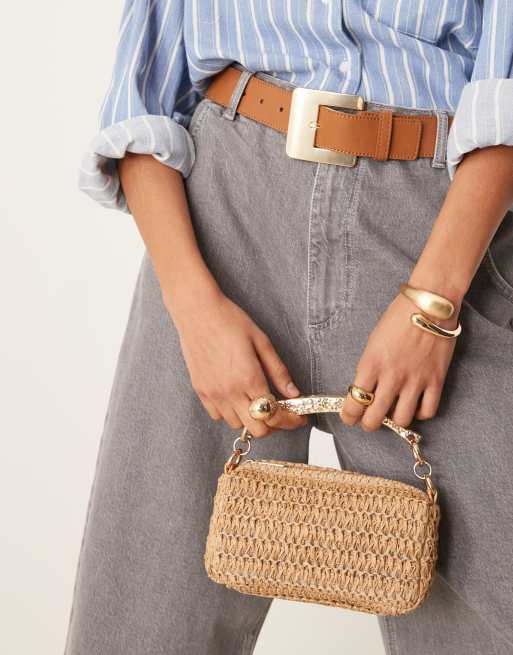 ASOS DESIGN - Borsa a mano in paglia con manico martellato e tracolla rimovibile