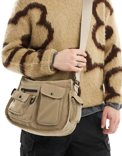 ASOS DESIGN - Borsa a tracolla beige con tasche cargo
