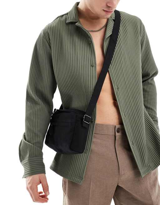 ASOS DESIGN - Borsa a tracolla in morbido cotone nero con tasca sul davanti
