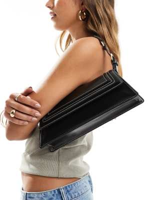 ASOS DESIGN - Borsa da spalla allungata strutturata nera con cuciture a contrasto