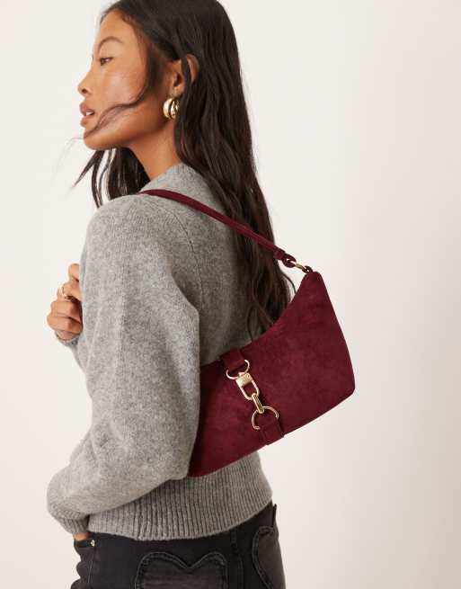 ASOS DESIGN - Borsa da spalla bordeaux in camoscio sintetico con moschettone