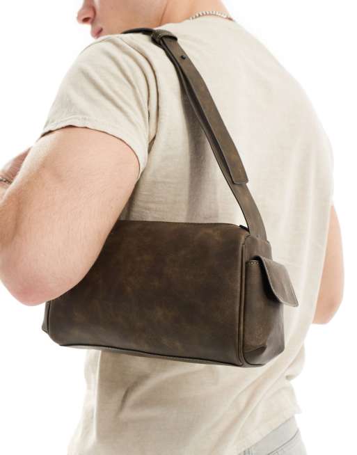 ASOS DESIGN - Borsa da spalla in pelle sintetica marrone slavato