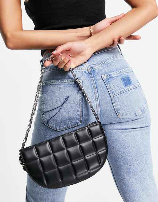 ASOS DESIGN - Borsa da spalla nera trapuntata e imbottita squadrata con tracolla a catena