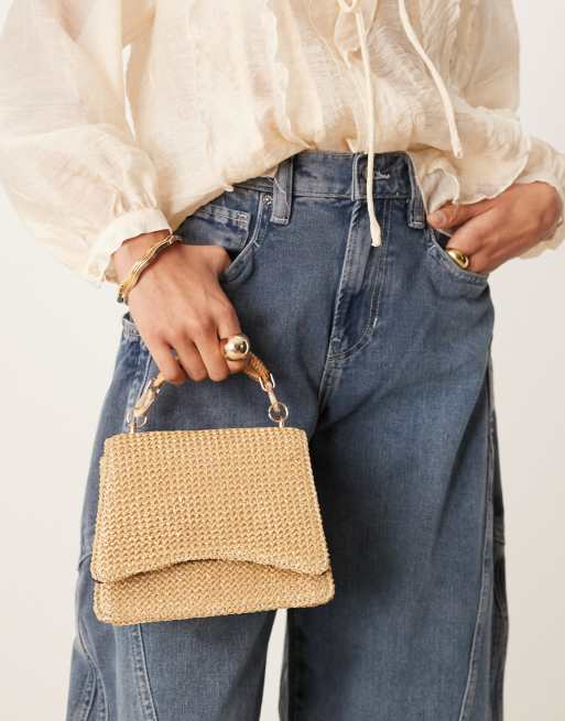 ASOS DESIGN - Borsa di paglia neutra con tracolla e manico in resina