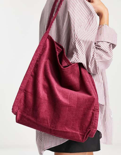 ASOS DESIGN - Borsa shopper in velluto a coste bordeaux