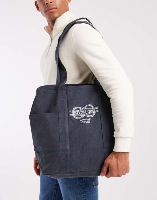 ASOS DESIGN - Borsa shopping in denim blu con grafica