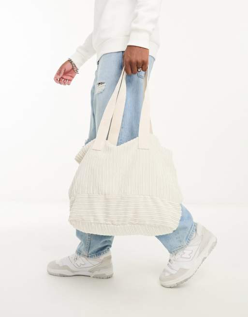 ASOS DESIGN - Borsa shopping in velluto a coste écru