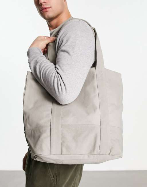 ASOS DESIGN - Borsa shopping oversize in cotone pesante grigio